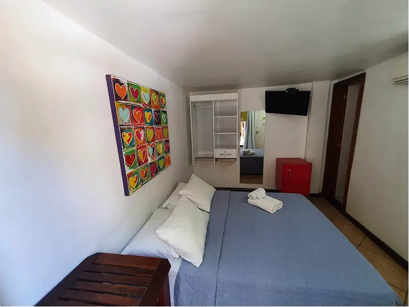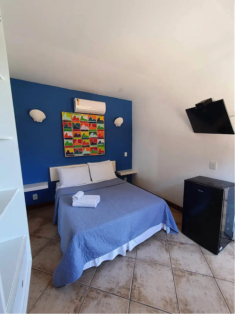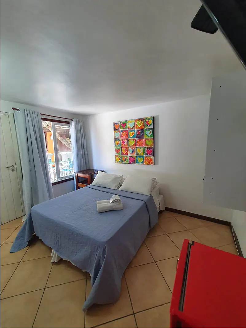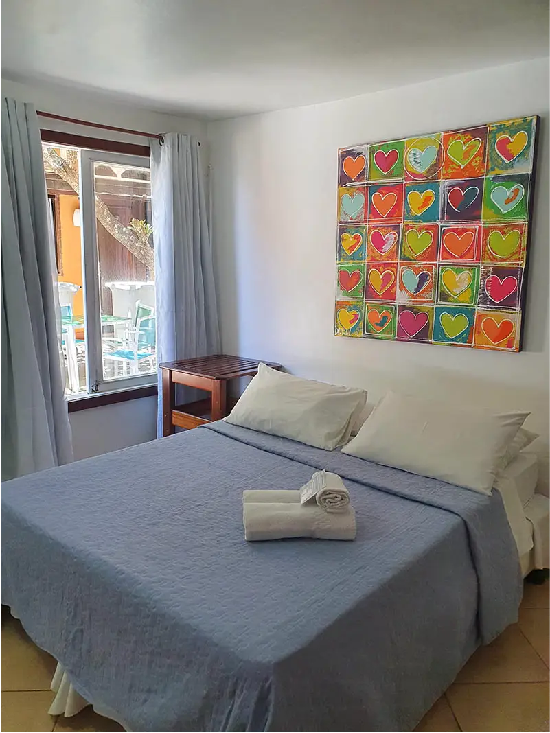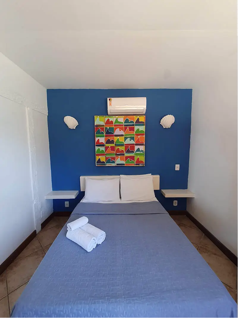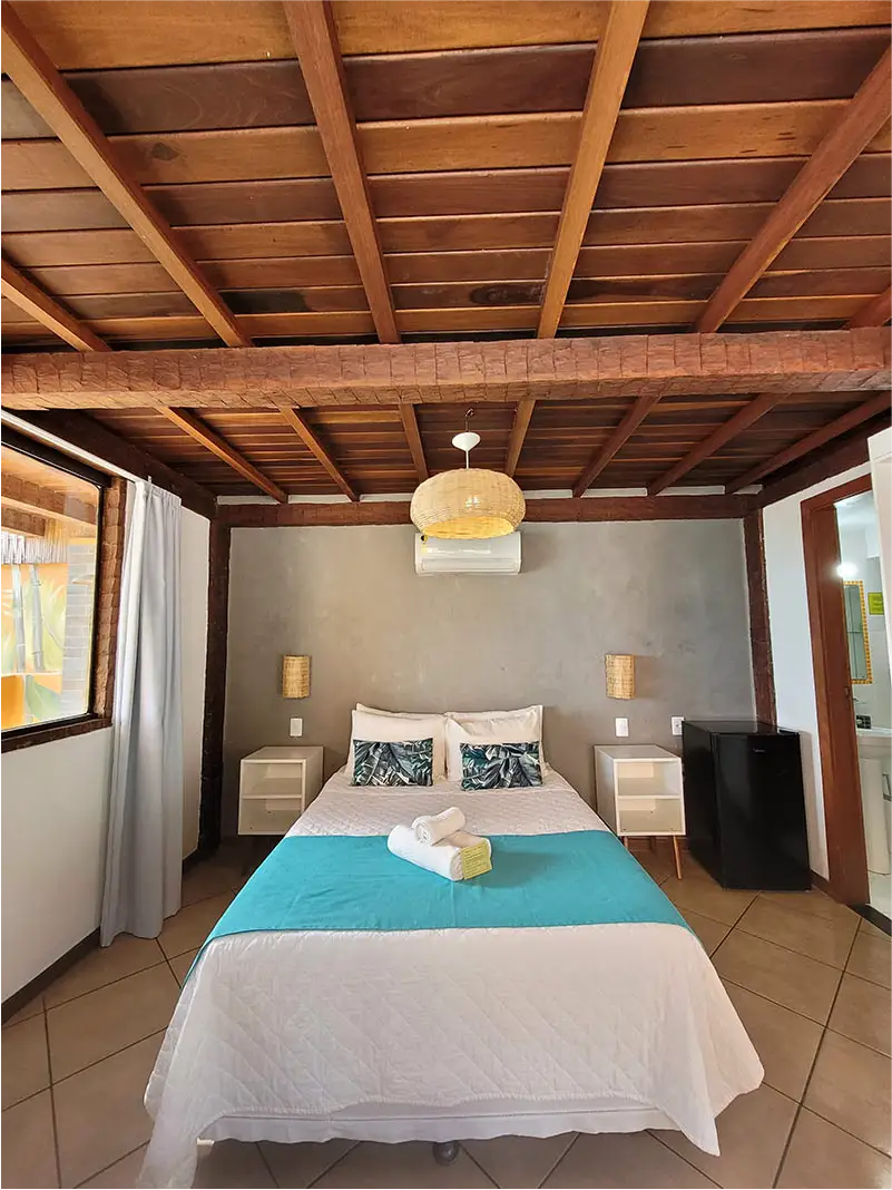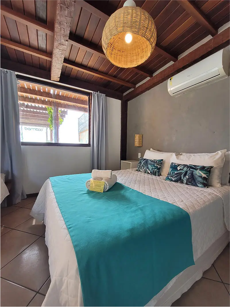 SUÍTE STANDART | Flexibilidade e conforto no coração de Búzios. A Suíte Forno é charmosa e versátil, podendo ser montada com cama de casal ou duas de solteiro. É a opção ideal para amigos ou casais que buscam uma hospedagem prática e confortável para aproveitar intensamente tudo o que a cidade oferece.