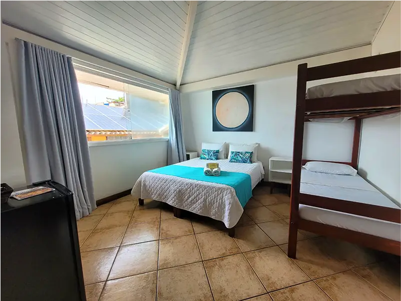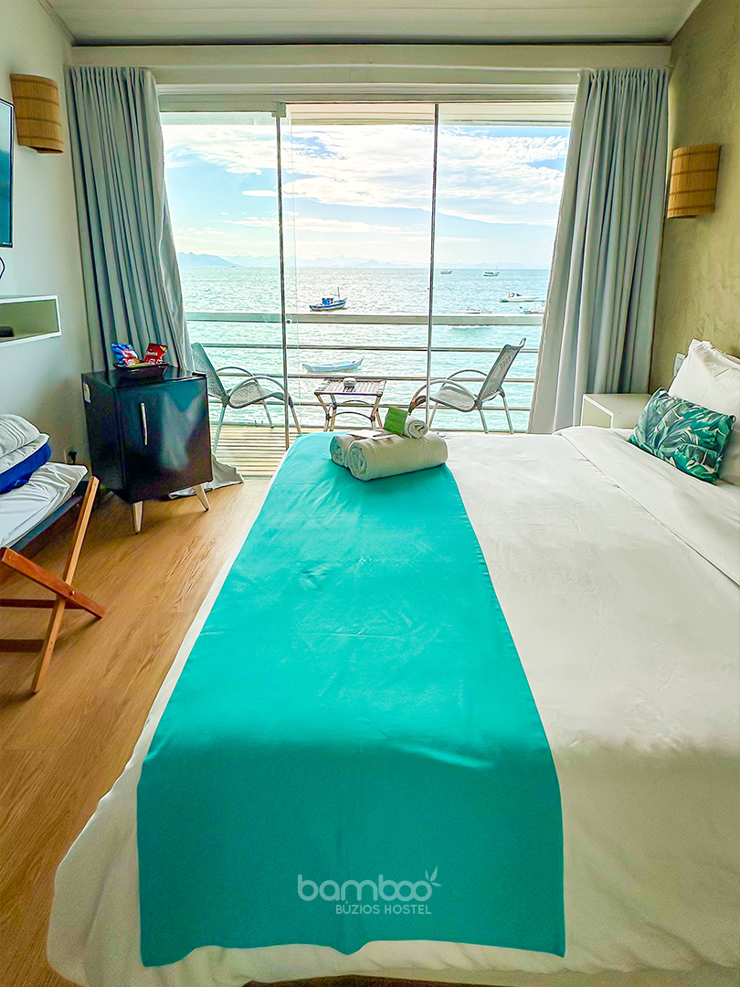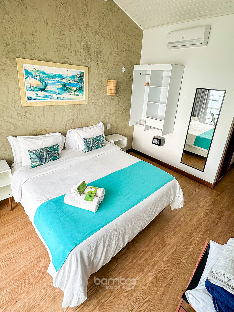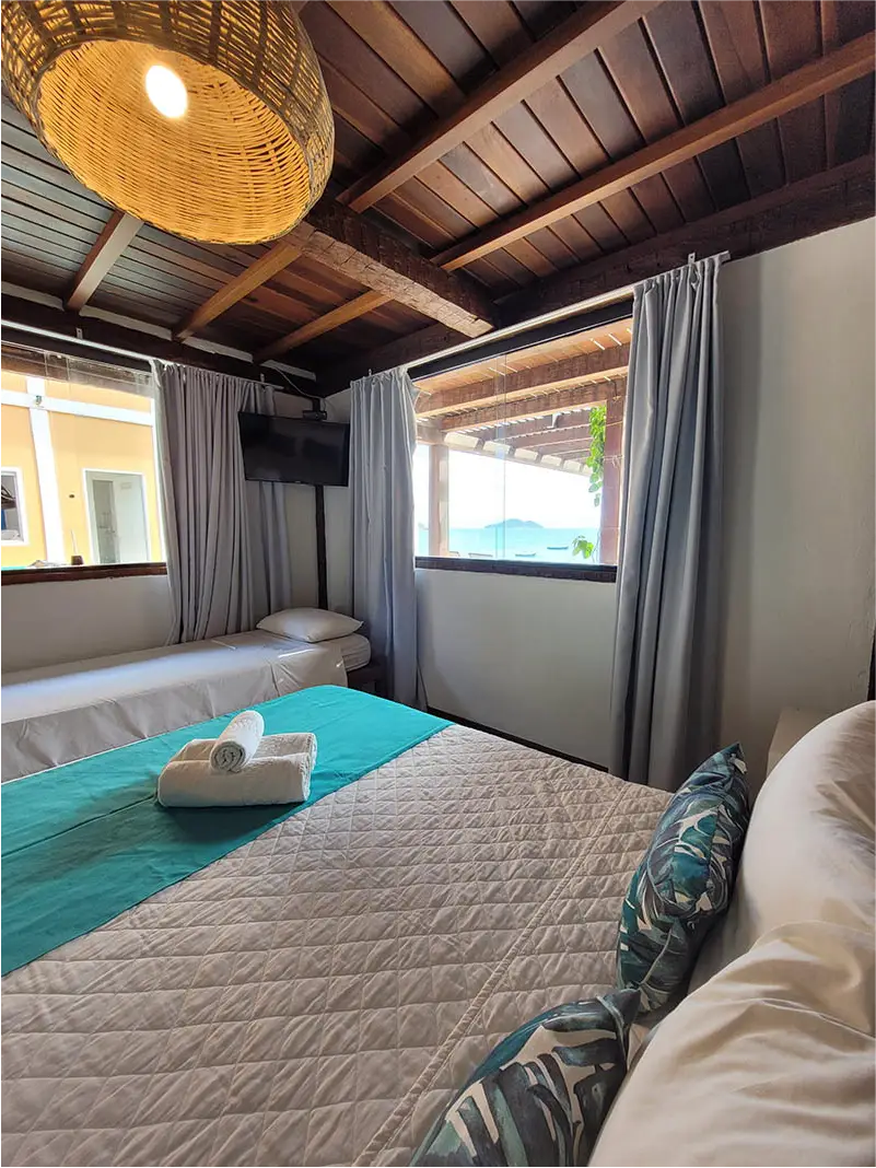 Encontre o refúgio perfeito! Nossos quartos privativos combinam a privacidade e o conforto das melhores pousadas com a localização privilegiada e a energia vibrante do nosso hostel pé na areia. Seja para uma viagem romântica, uma aventura com amigos ou uma estadia em família, temos a suíte ideal que une comodidade e o melhor custo-benefício da do centro de Búzios.