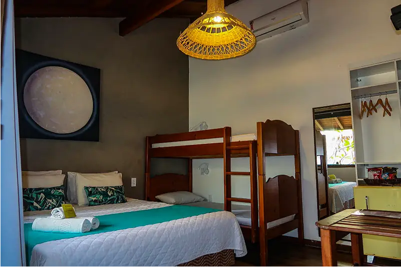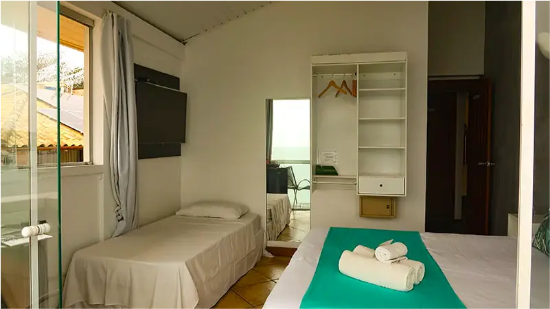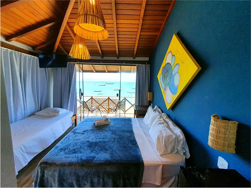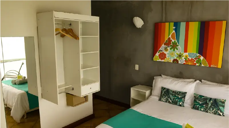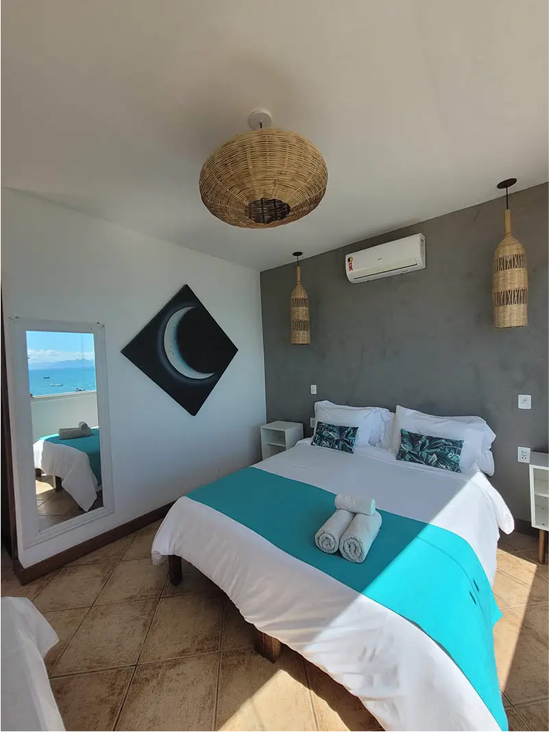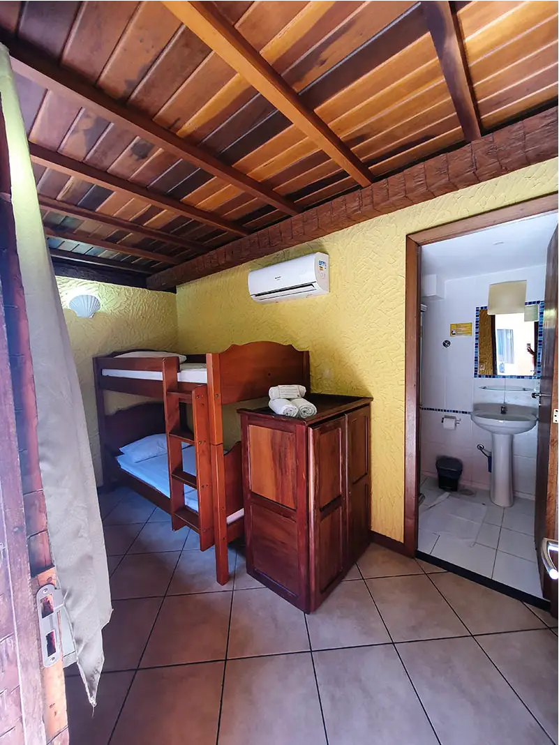 Encontre o refúgio perfeito! Nossos quartos privativos combinam a privacidade e o conforto das melhores pousadas com a localização privilegiada e a energia vibrante do nosso hostel pé na areia. Seja para uma viagem romântica, uma aventura com amigos ou uma estadia em família, temos a suíte ideal que une comodidade e o melhor custo-benefício da do centro de Búzios.